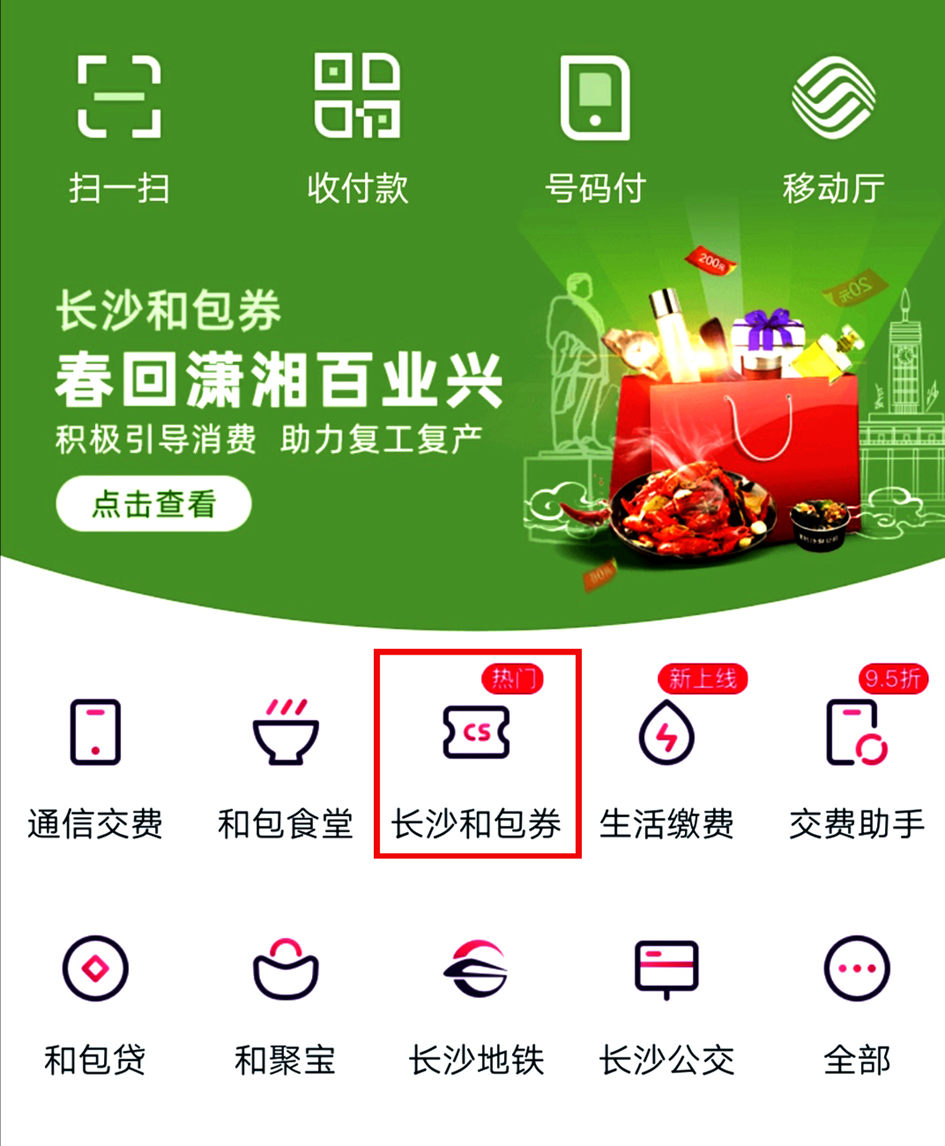 點擊長(cháng)沙和包券、工(gōng)會(huì)消費(fèi)券,